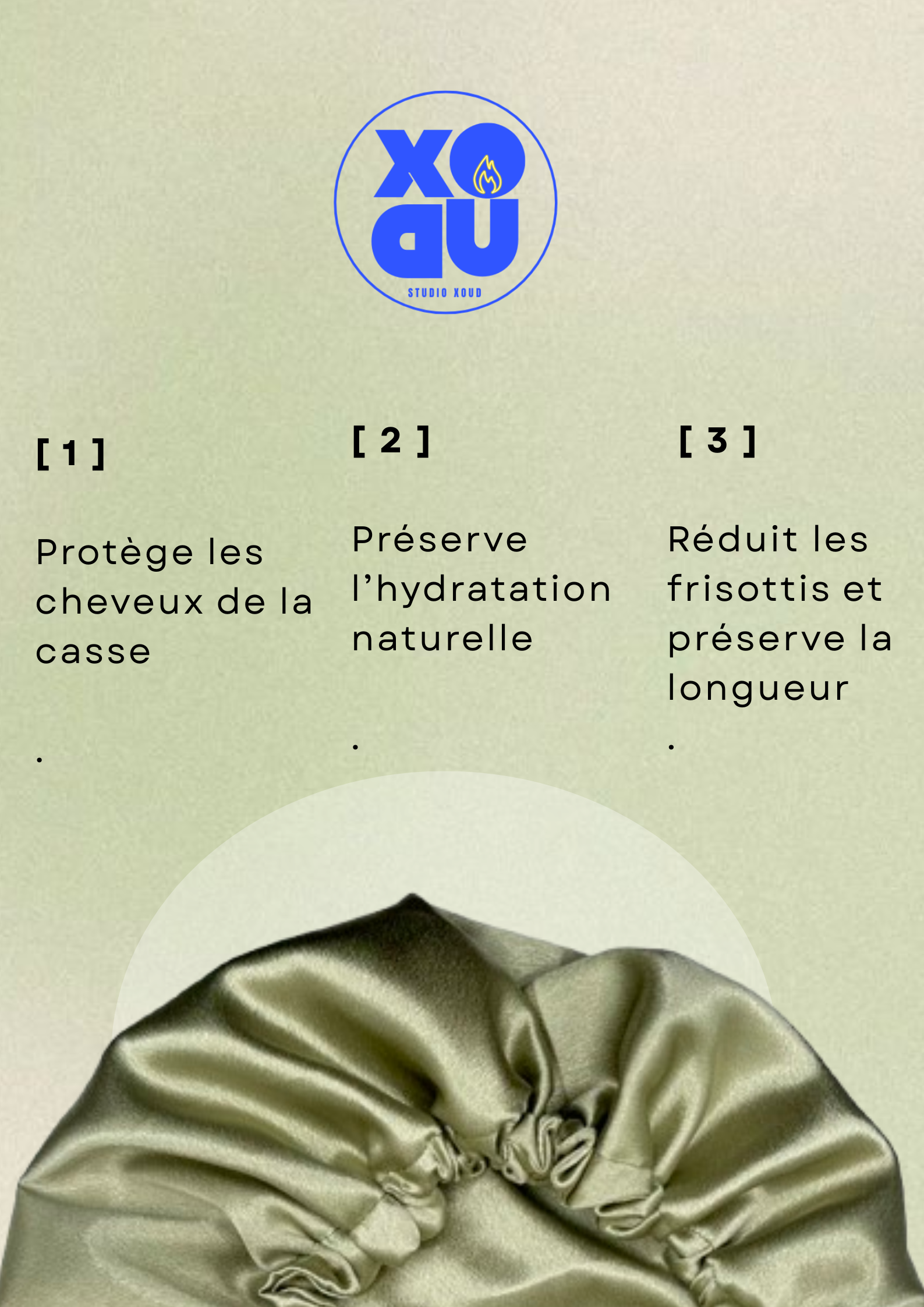 Préservez la beauté de vos cheveux chaque nuit grâce à notre bonnet en satin, conçu pour réduire les frottements et maintenir l’hydratation naturelle de la fibre capillaire.