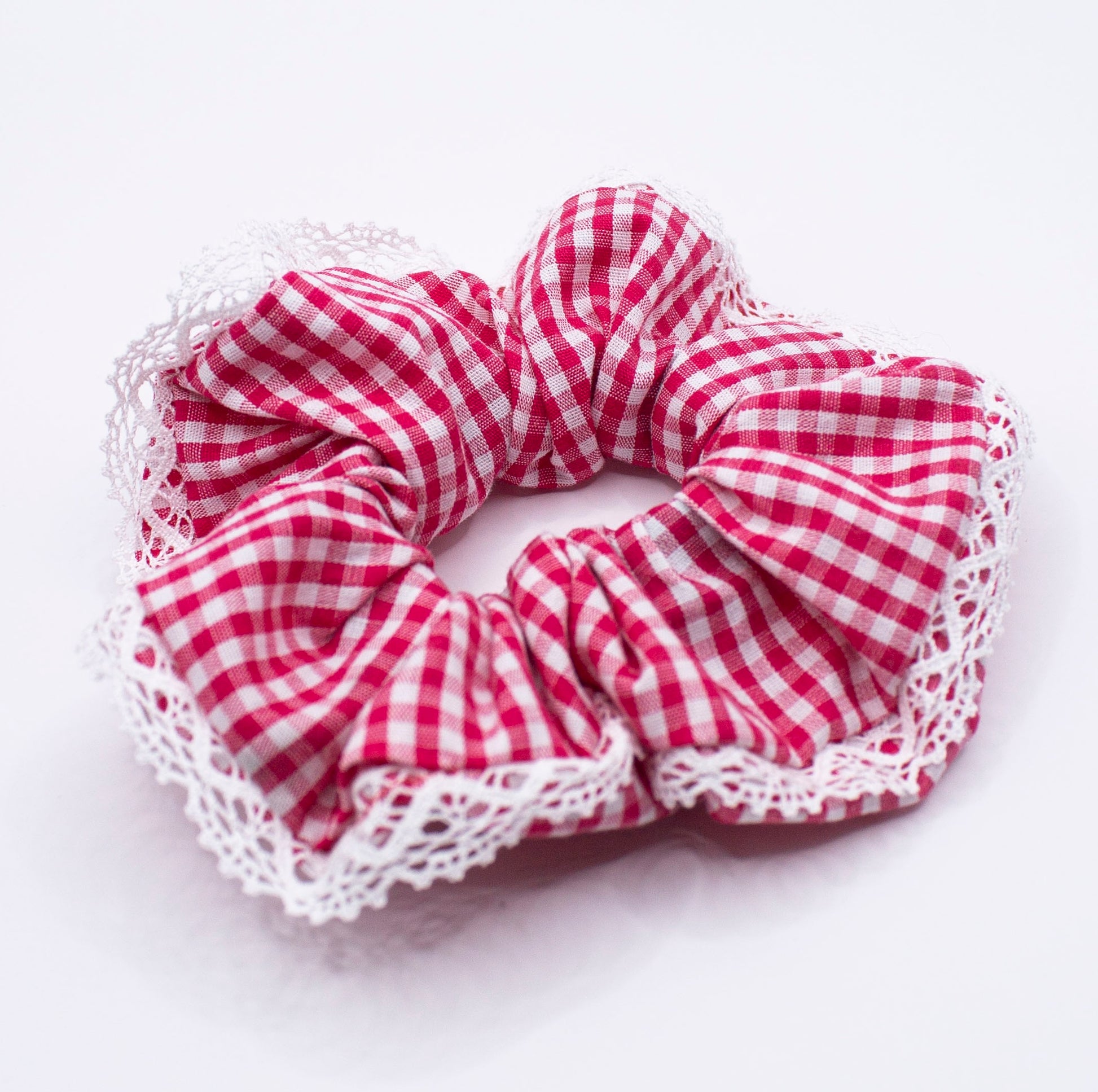 Chouchou vichy rouge à dentelle